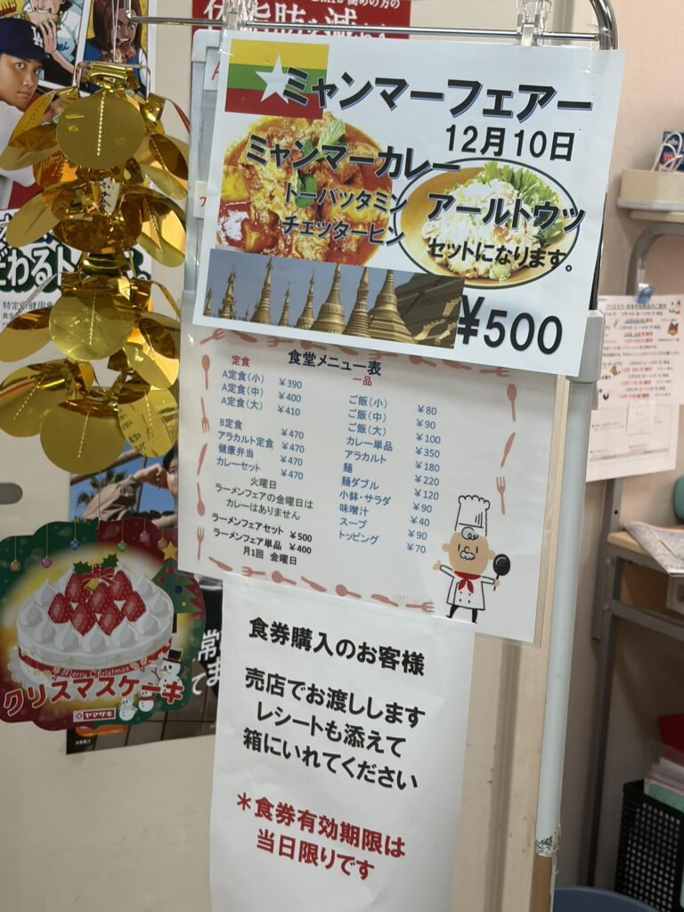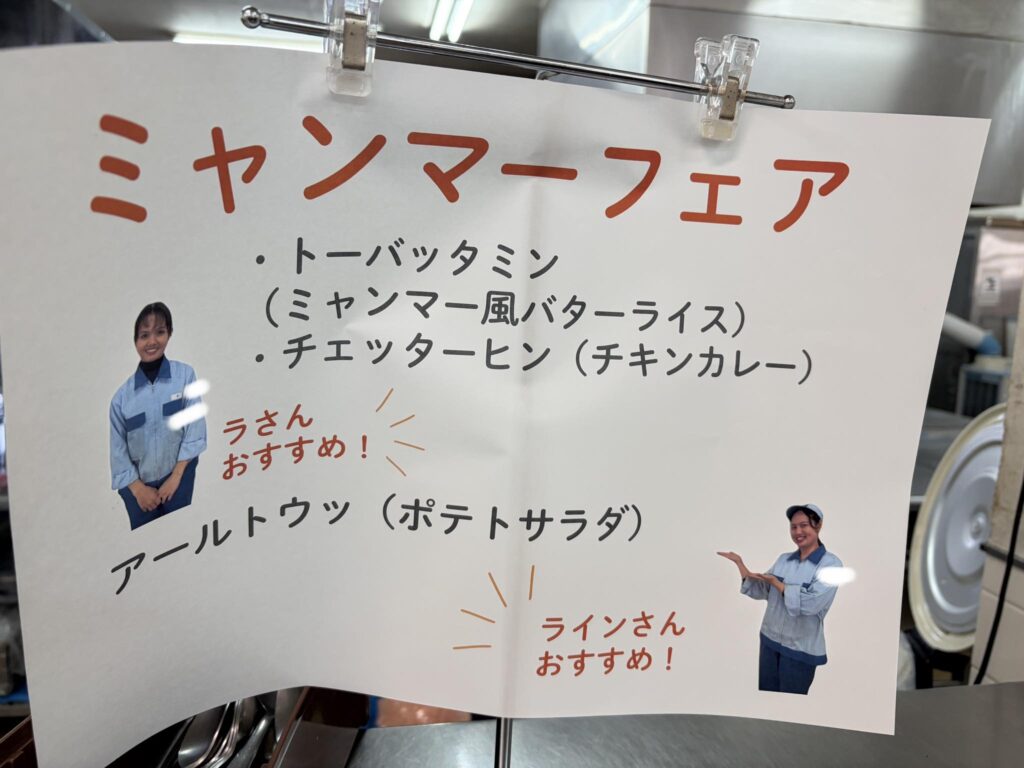 ちょうどランチタイムで、食堂では「ミャンマーフェア」が開催されていたので、せっかくの機会にいただきました。